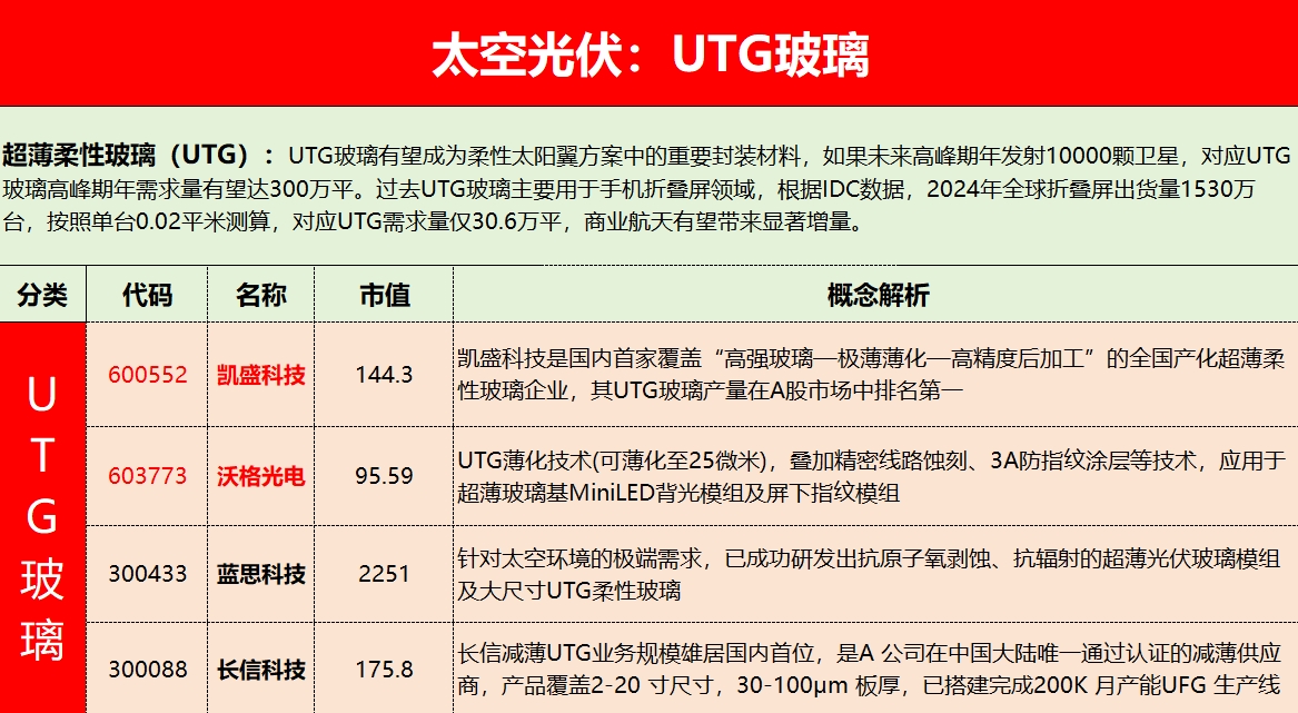 太空光伏:超薄柔性玻璃(UTG玻璃)有望成为柔性太阳翼方案中的重要封装材料(UTG:凯盛科技、蓝思科技、长信科技)$凯盛科技(SH600552)$ $蓝思科技(SZ300433)$ $长信科技(SZ300088)$