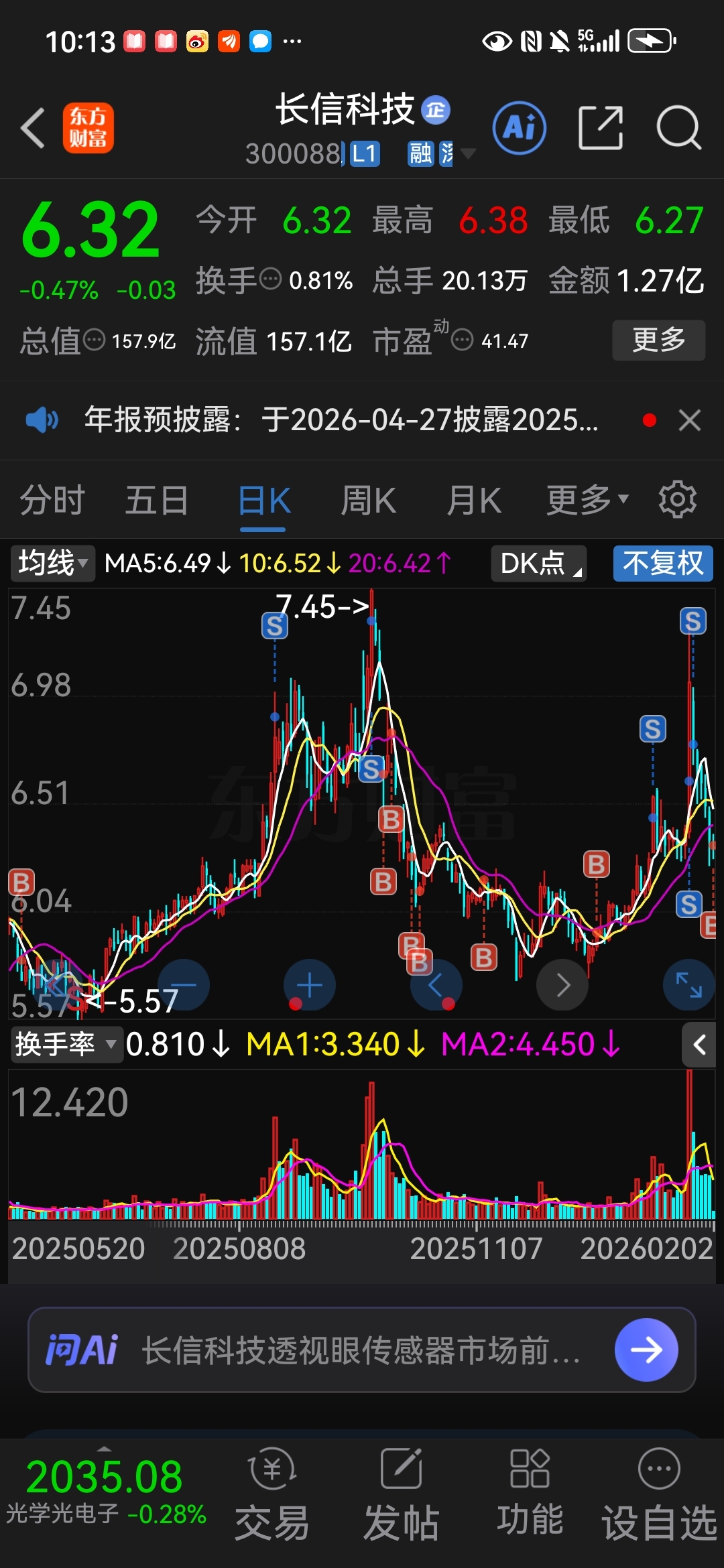 $长信科技(SZ300088)$ 看运气了