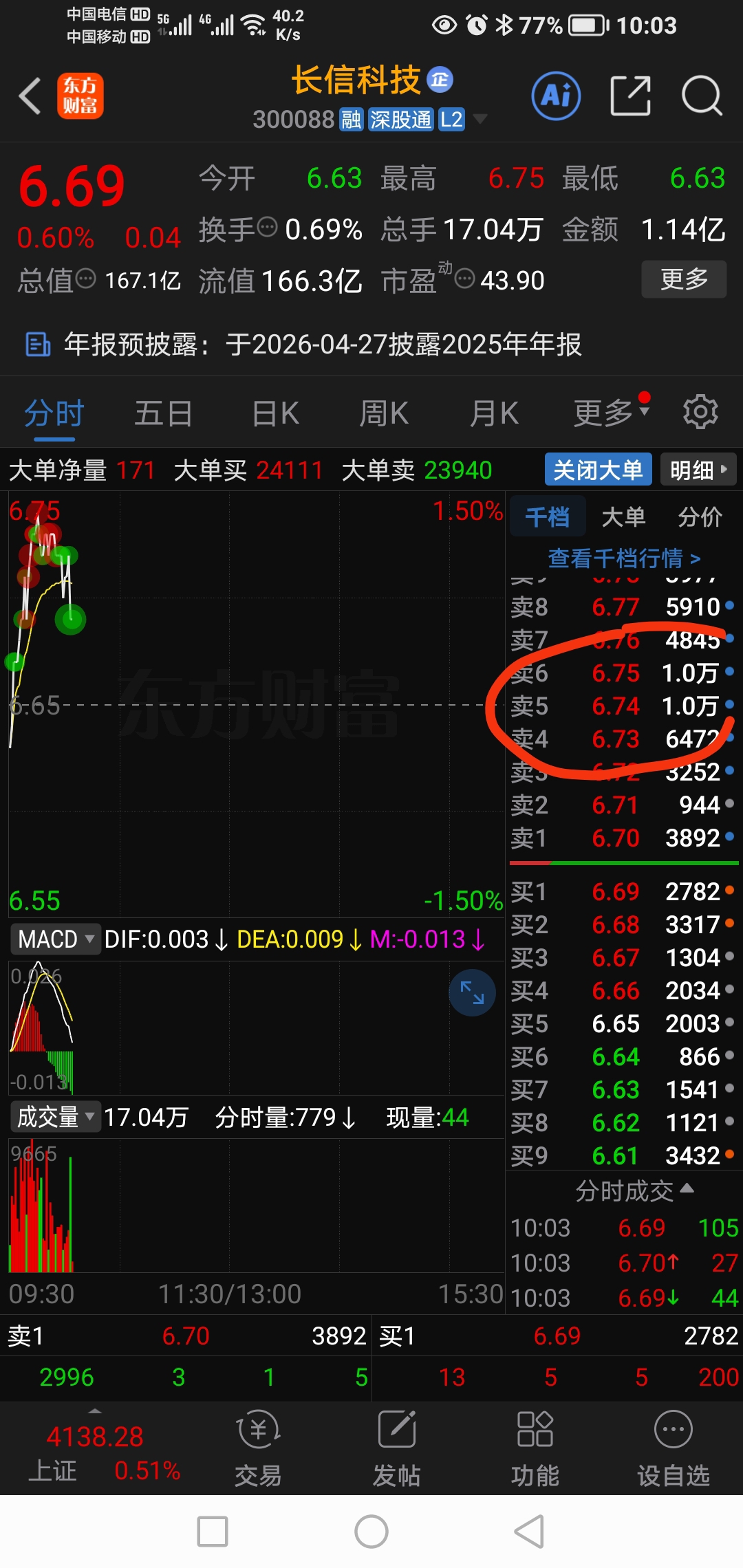 昨天上午也是在上面挂了两个1万手,然后突然放了个大单吃掉了,很明显主力的继续扫货