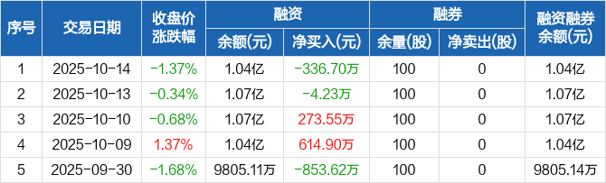 金通灵:融资净偿还336.7万元,融资余额1.04亿元(10-14)