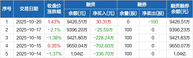 金通灵:融资净买入30.31万元,融资余额9426.51万元(10-20)