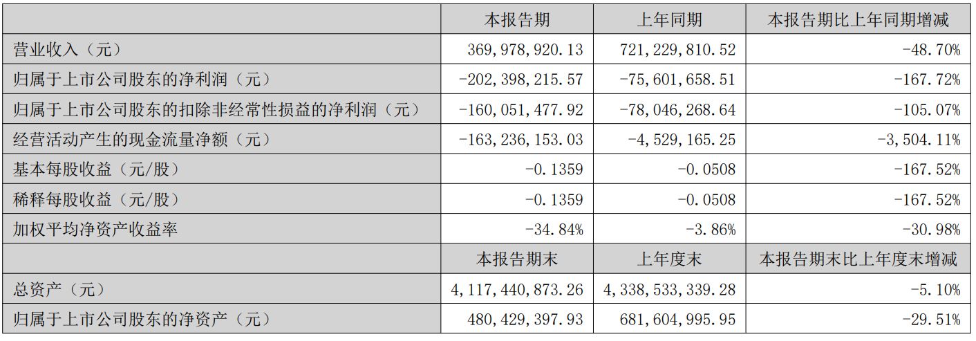 今年上半年,金通灵实现营业收入3.7亿元,同比下滑48.7%;归母净利润-2.02亿元,亏损幅度同比扩大。