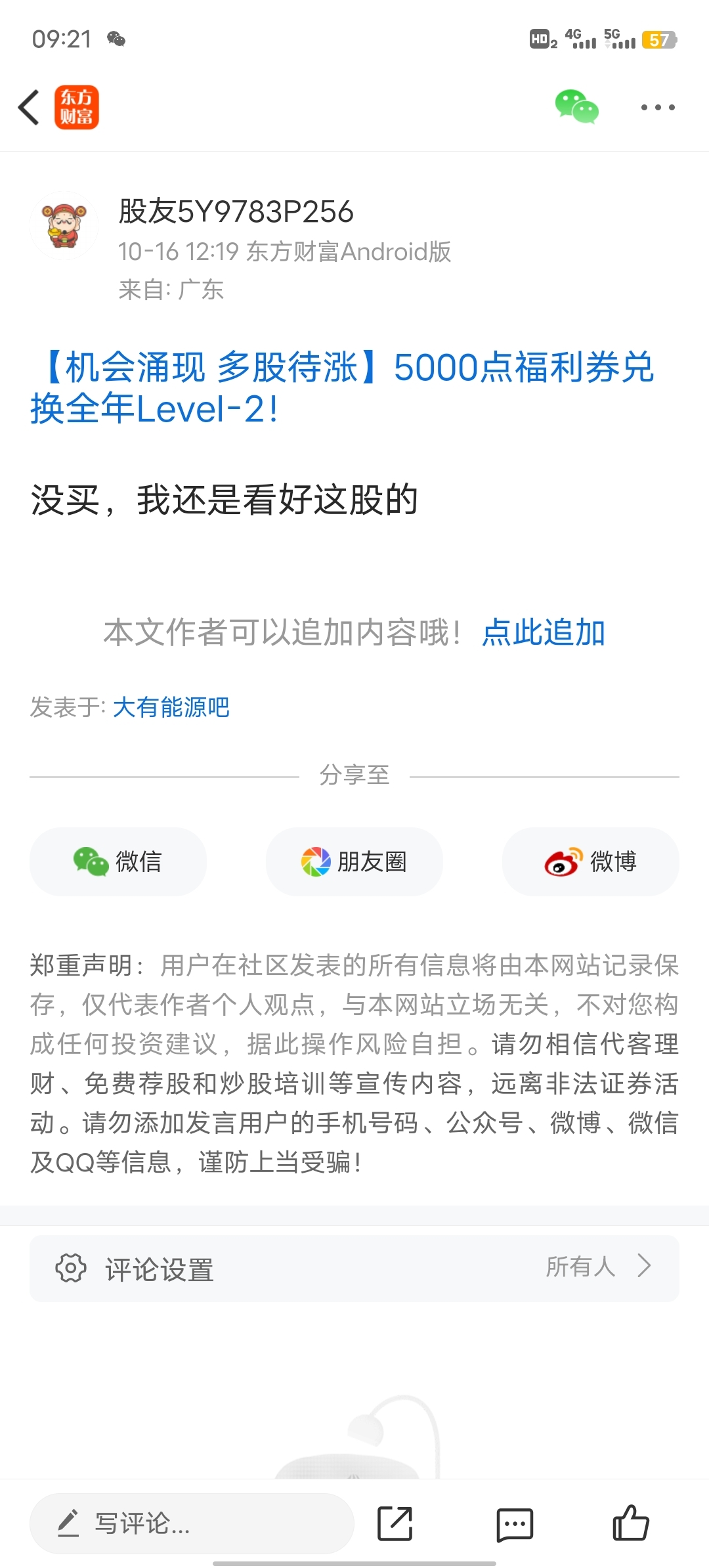 温馨提示: 1.根据《证券法》规定,禁止编造、传播虚假信息或者误导性信息,扰乱证券市场;2.用户在本社区发表的所有资料、言论等仅代表个人观点,与本网站立场无关,不对您构成任何投资建议。用户应基于自己的独立判断,自行决定证券投资并承担相应风险。《东方财富社区管理规定》