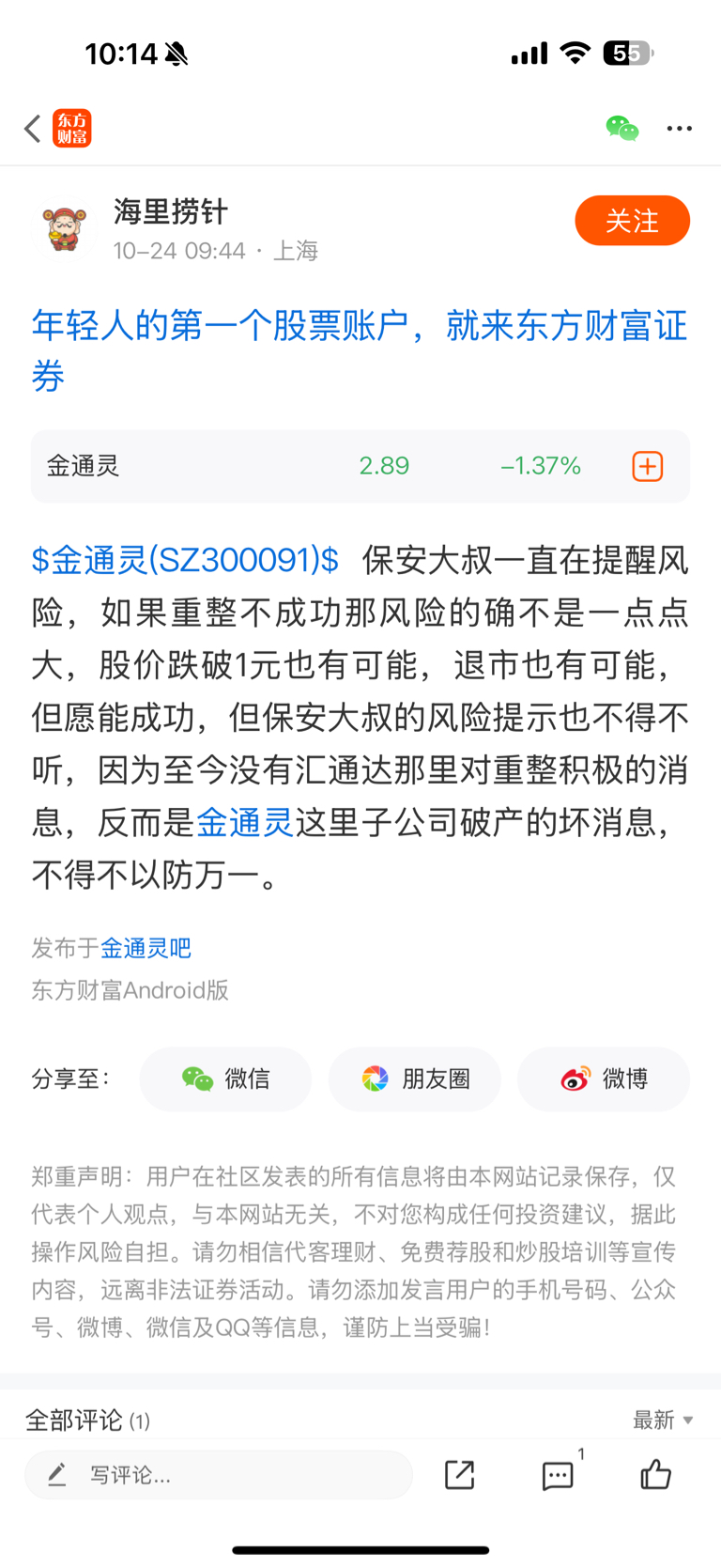$金通灵(SZ300091)$ 老狐狸那个老亏货再次改名删帖躲了几天还是忍不住要回来看看
