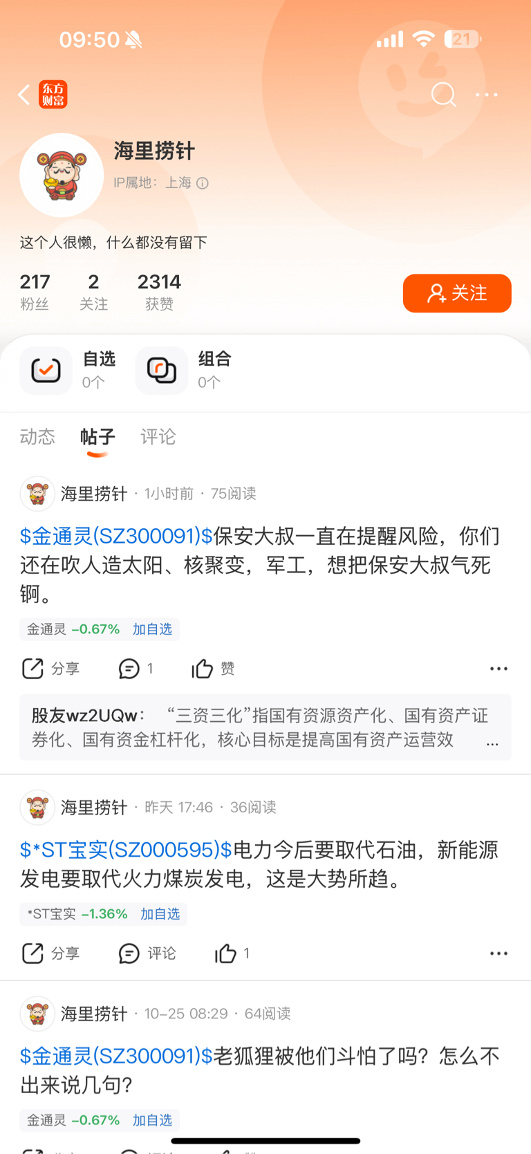 $金通灵(SZ300091)$ 这个老苟托怎么去哪里哪跌呢,第二次改名删帖跑了几天又悄悄回来了,说话话术还伪装一下,在旋极吧也混不下去了,把那边也搞得乌烟瘴气,你怎么去一个吧就灰头土脸的要改名删帖一次