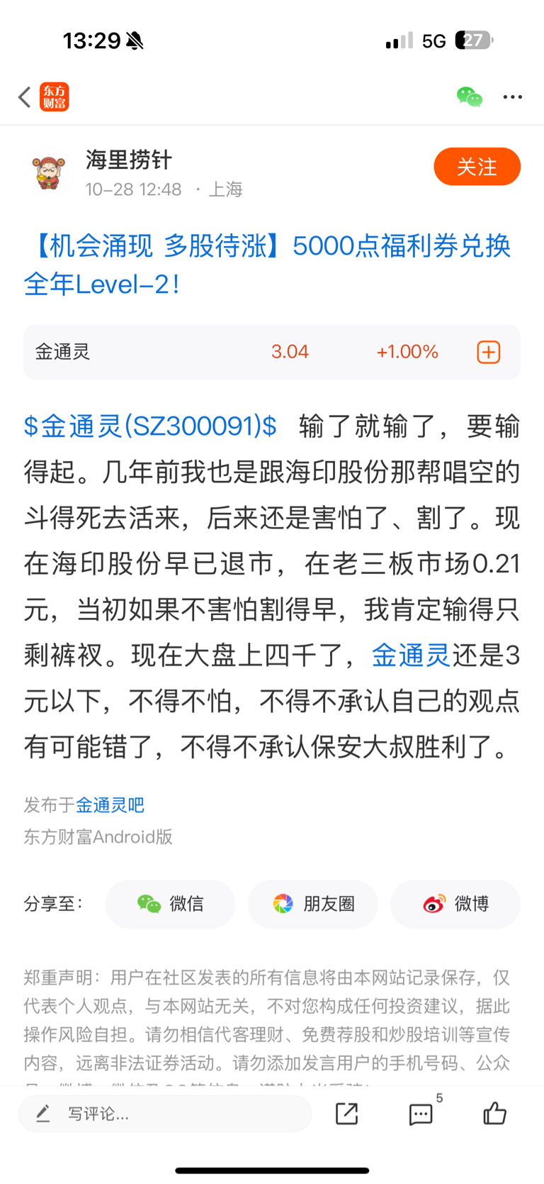 温馨提示: 1.根据《证券法》规定,禁止编造、传播虚假信息或者误导性信息,扰乱证券市场;2.用户在本社区发表的所有资料、言论等仅代表个人观点,与本网站立场无关,不对您构成任何投资建议。用户应基于自己的独立判断,自行决定证券投资并承担相应风险。《东方财富社区管理规定》