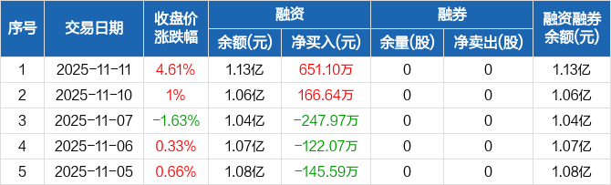 金通灵:融资净买入651.1万元,融资余额1.13亿元(11-11)