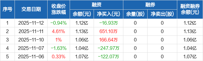 金通灵:融资净偿还16.93万元,融资余额1.12亿元(11-12)