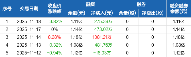 金通灵:融资净偿还275.39万元,融资余额1.11亿元(11-18)