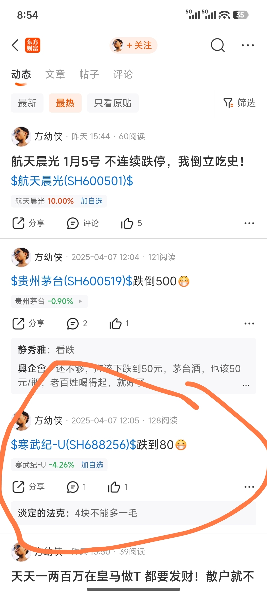此人专业唱空,寒武纪80,现在都1300了;反向操作有一套!
