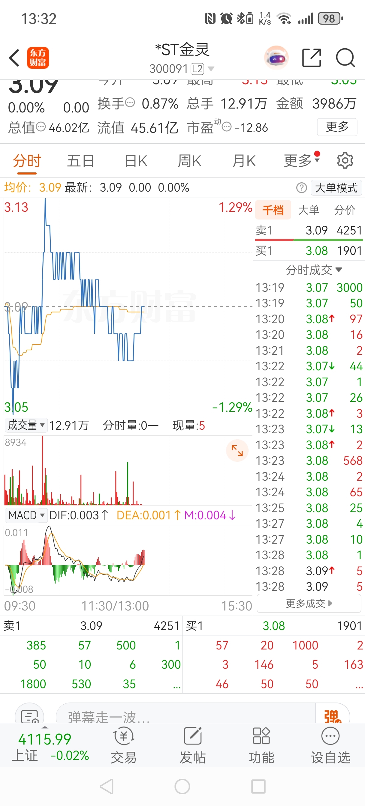 $*ST金灵(SZ300091)$ 四分钟一笔成交量都没有,可以拉一波了吧,不拉一波怎么出货