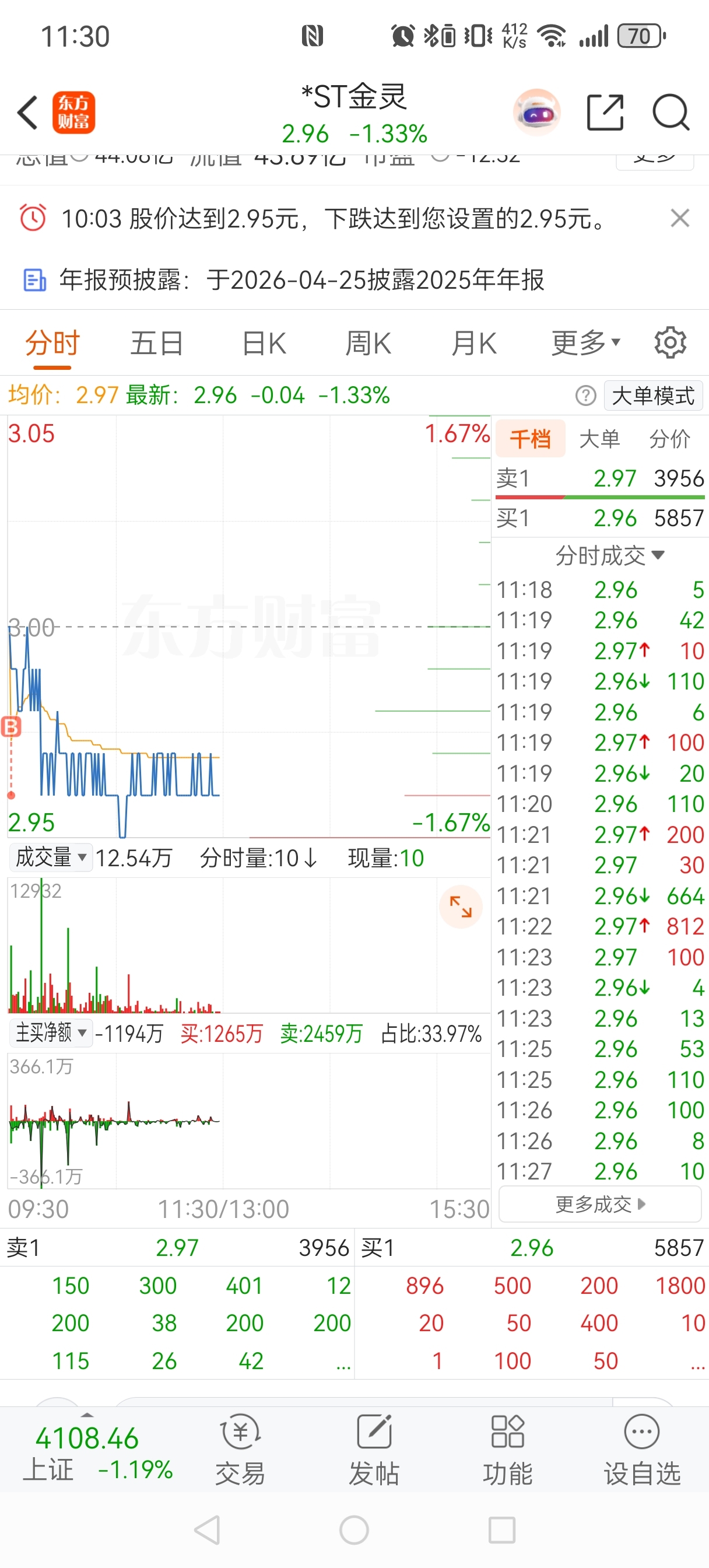 $*ST金灵(SZ300091)$ 三分钟没成交一笔,笑死我了