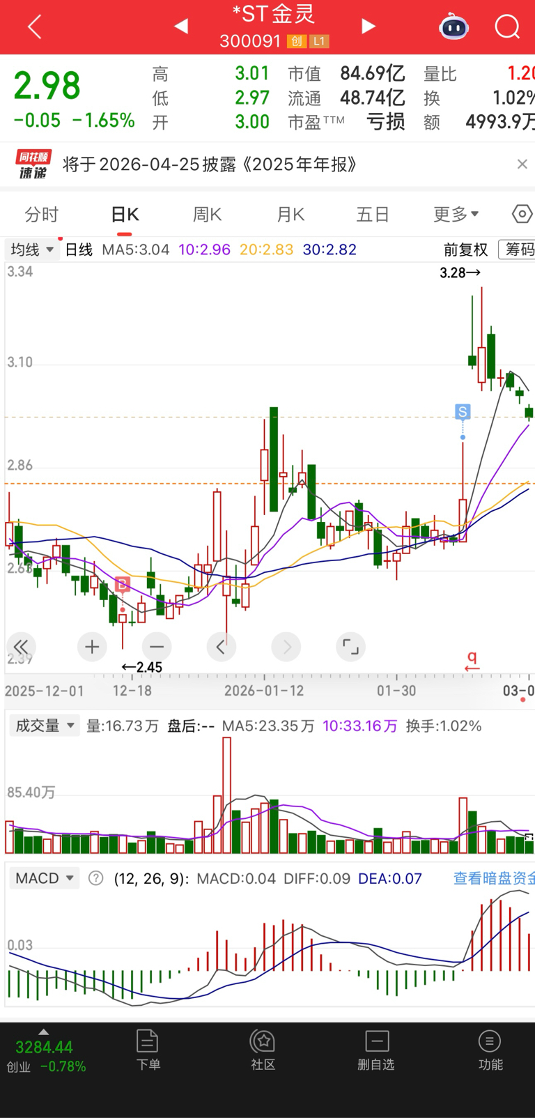 $*ST金灵(SZ300091)$ 还是太贵,等你下来接我