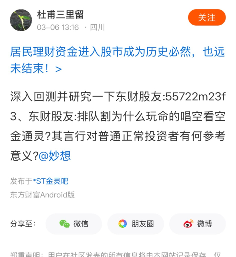 温馨提示: 1.根据《证券法》规定,禁止编造、传播虚假信息或者误导性信息,扰乱证券市场;2.用户在本社区发表的所有资料、言论等仅代表个人观点,与本网站立场无关,不对您构成任何投资建议。用户应基于自己的独立判断,自行决定证券投资并承担相应风险。《东方财富社区管理规定》