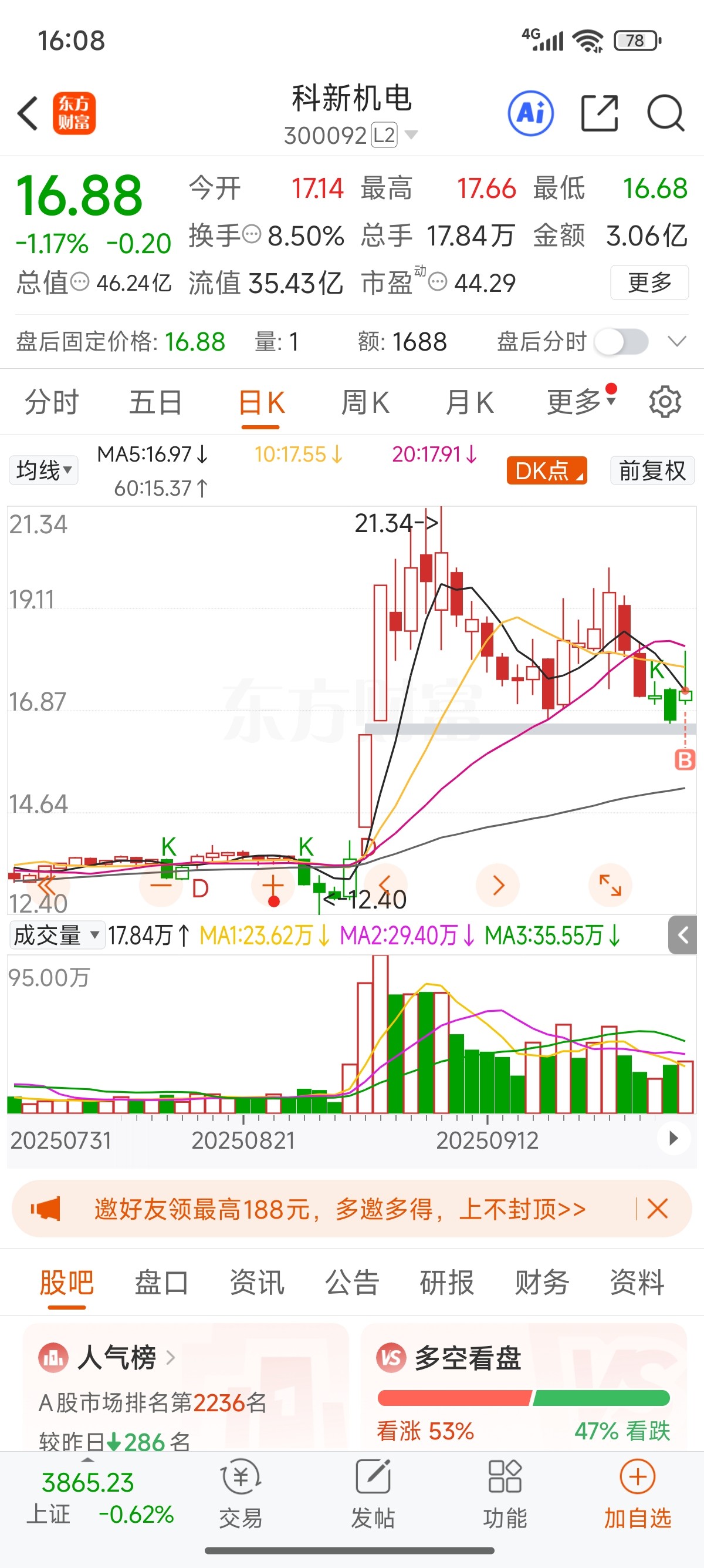 $科新机电(SZ300092)$ 在专用设备板块里面,能源及重型设备这个子板块目前是最好的。而这个子板块里面47只个股,能兼具强势和调整末端的只有科新机电这1只。附上我9月份所有操作的买入点,科新机电一般来说不会就此跌下去的,止损放在收盘跌破16.58元,与散户共勉。