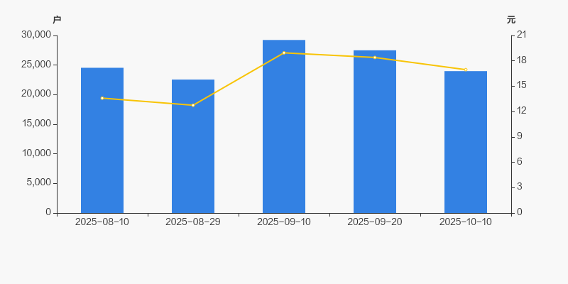 2025年8月10日至今,公司股东户数有所下降,区间跌幅为2.30%。2025年8月10日至2025年10月10日区间股价上涨24.80%。