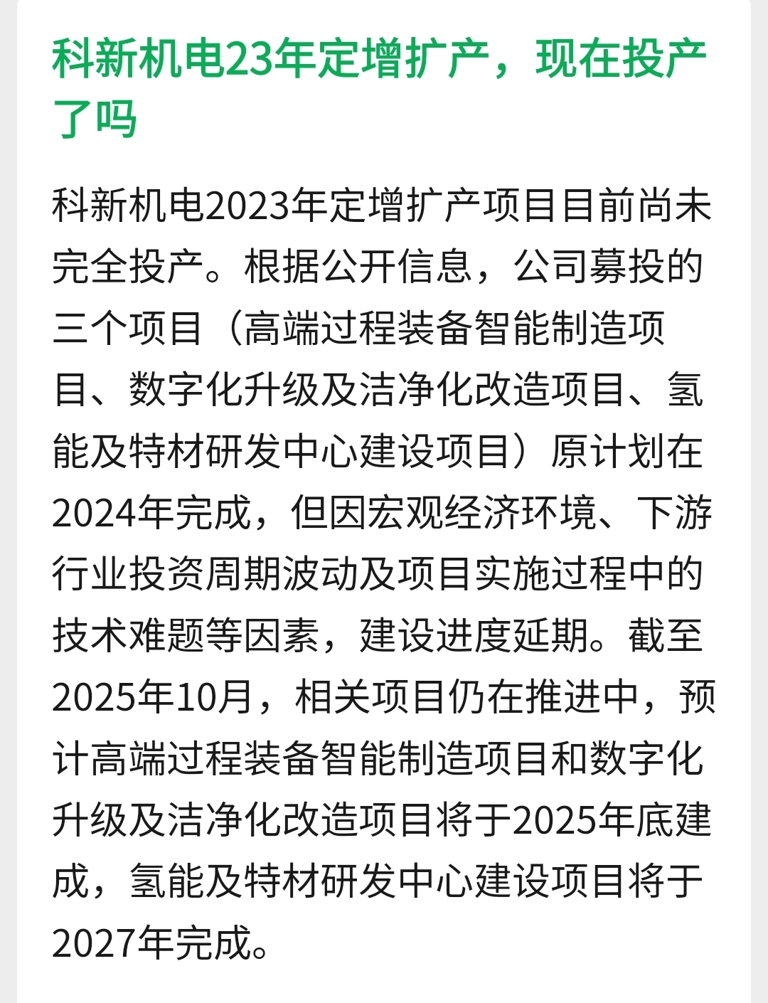 $科新机电(SZ300092)$ 我认为此股24年,25年的营收利润下滑。应该是受到了23年定增扩产的影响,都是在往外支出,目前公司订单充足,加上进入核电景气期,预计26年投产以后将会有很大的业绩改善。炒股炒的是未来,现在的业绩下滑,恰恰给了买入的好时机,长期持有应该会有不错的收益,个人拙见,不构成买卖建议。#投资随笔#