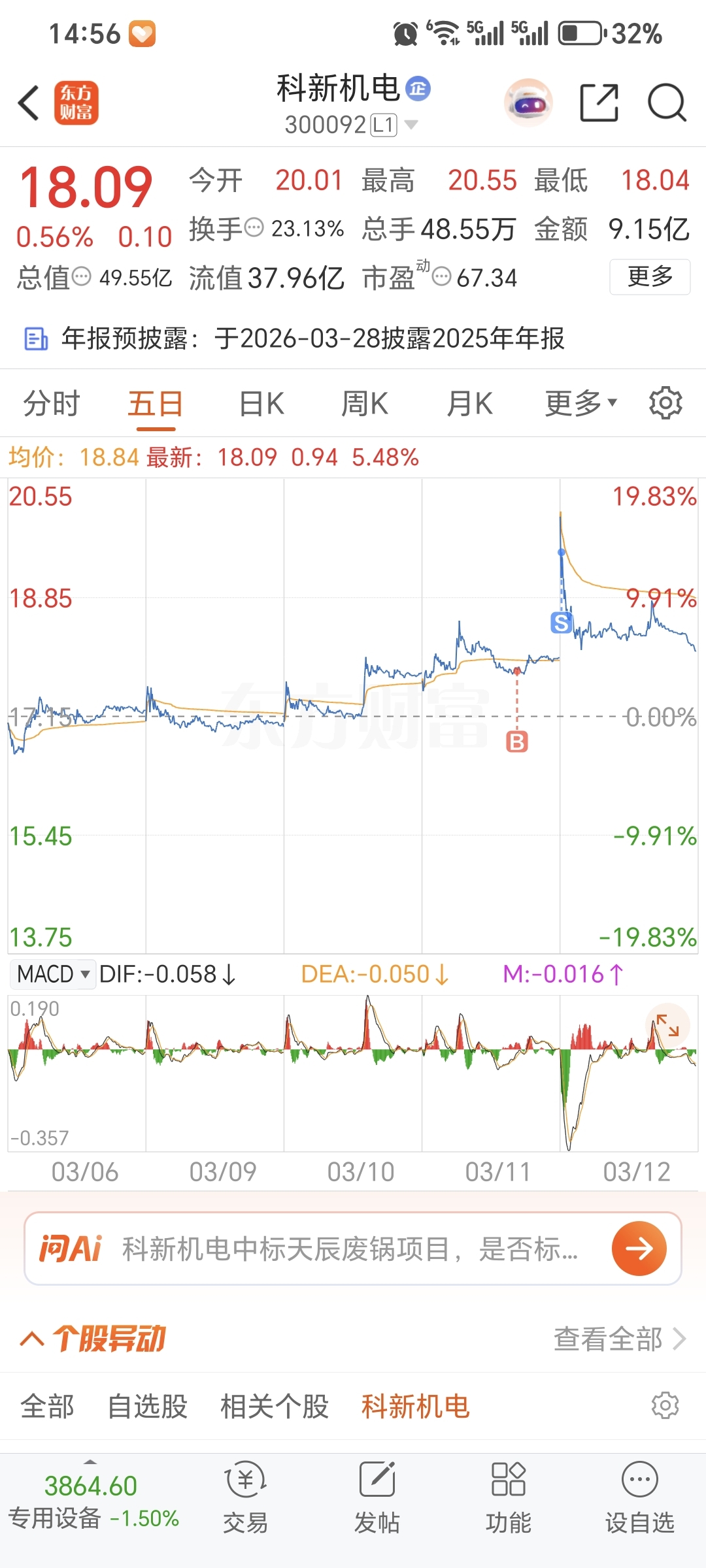 $科新机电(SZ300092)$ 虽然早上被卡到了但还好卖出去了 昨天买 今天卖 运气好