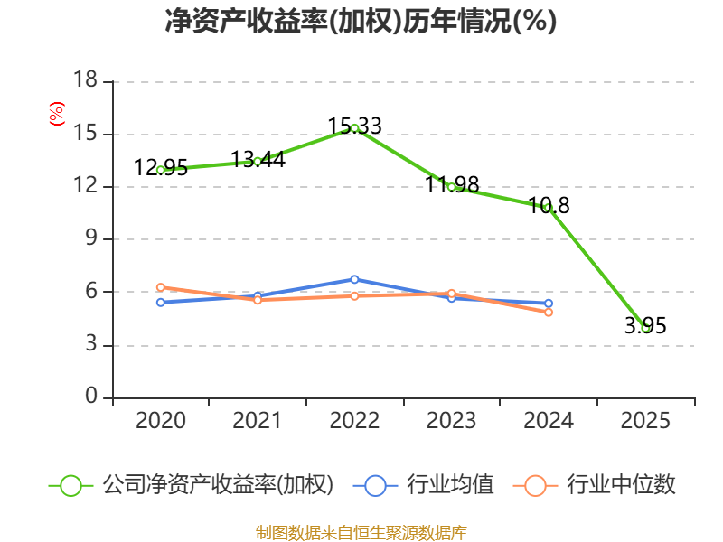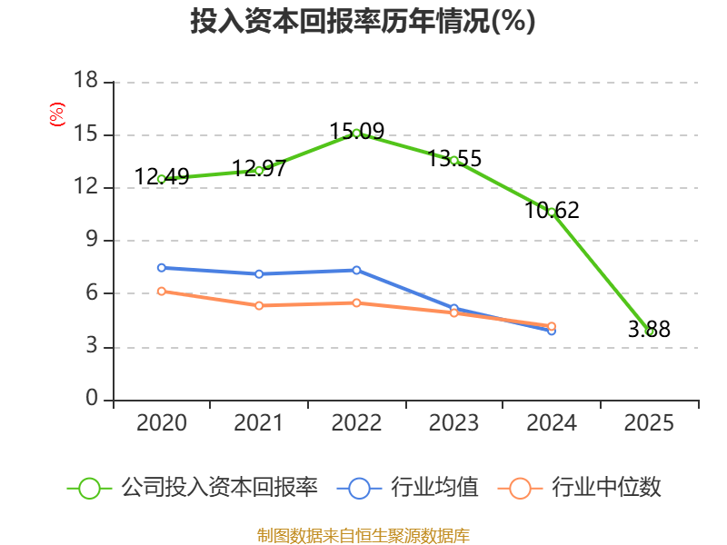 数据显示,2025年公司加权平均净资产收益率为3.95%,较上年同期下降6.85个百分点。公司2025年投入资本回报率为3.88%,较上年同期下降6.74个百分点。