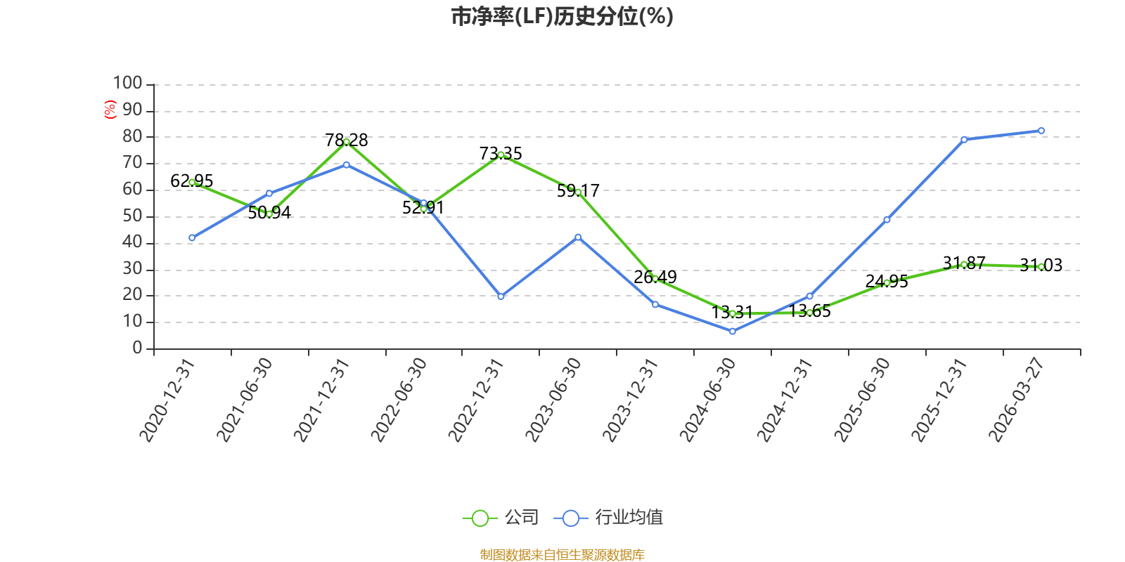 市盈率、市净率为负时,不显示当期分位数,会导致折线图中断。