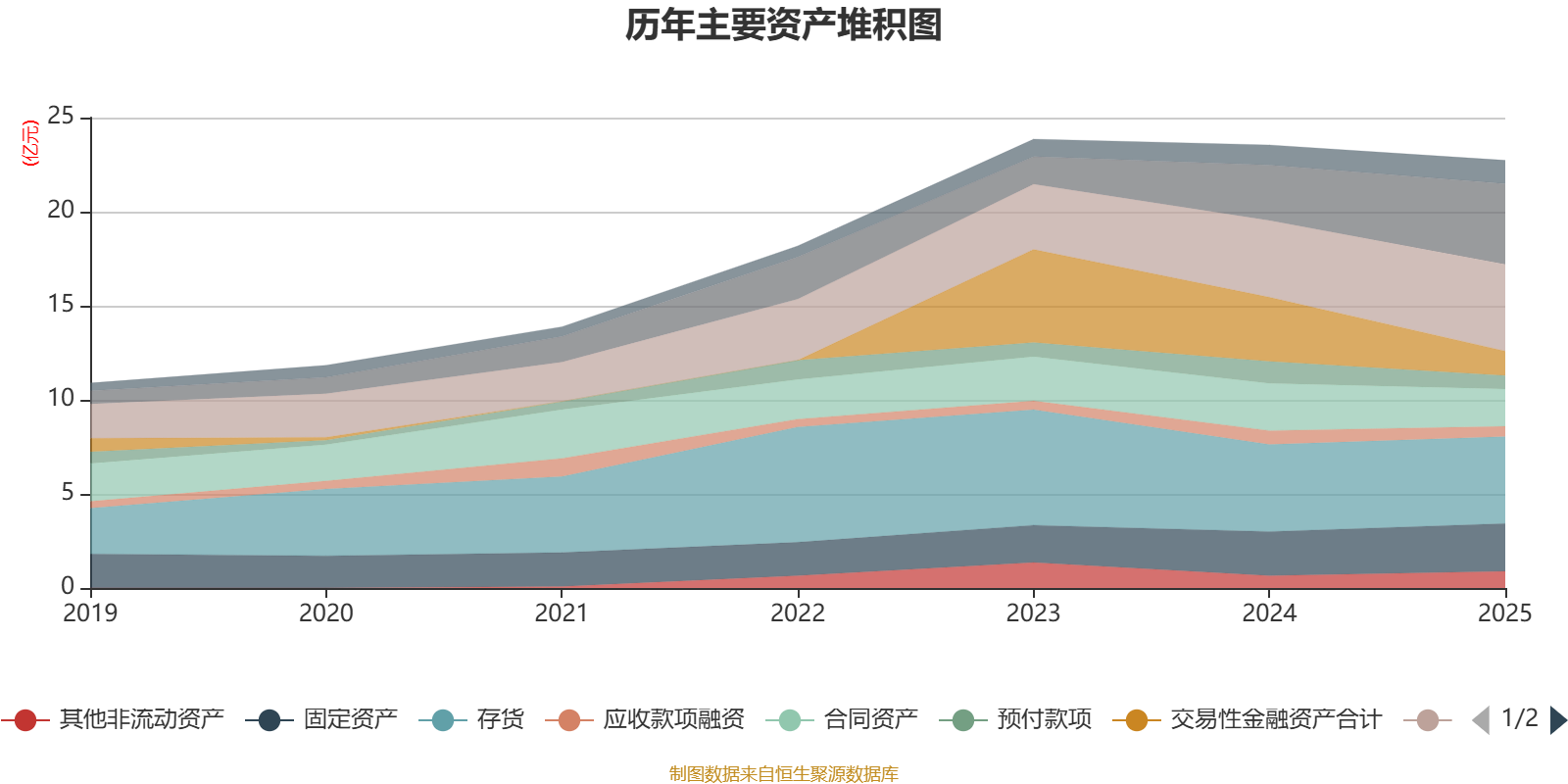 资产重大变化方面,截至2025年末,公司交易性金融资产合计较上年末减少61.88%,占公司总资产比重下降8.76个百分点;货币资金较上年末增加45.26%,占公司总资产比重上升6.33个百分点;应收票据及应收账款较上年末增加13.25%,占公司总资产比重上升3个百分点;合同资产较上年末减少20.89%,占公司总资产比重下降1.92个百分点。