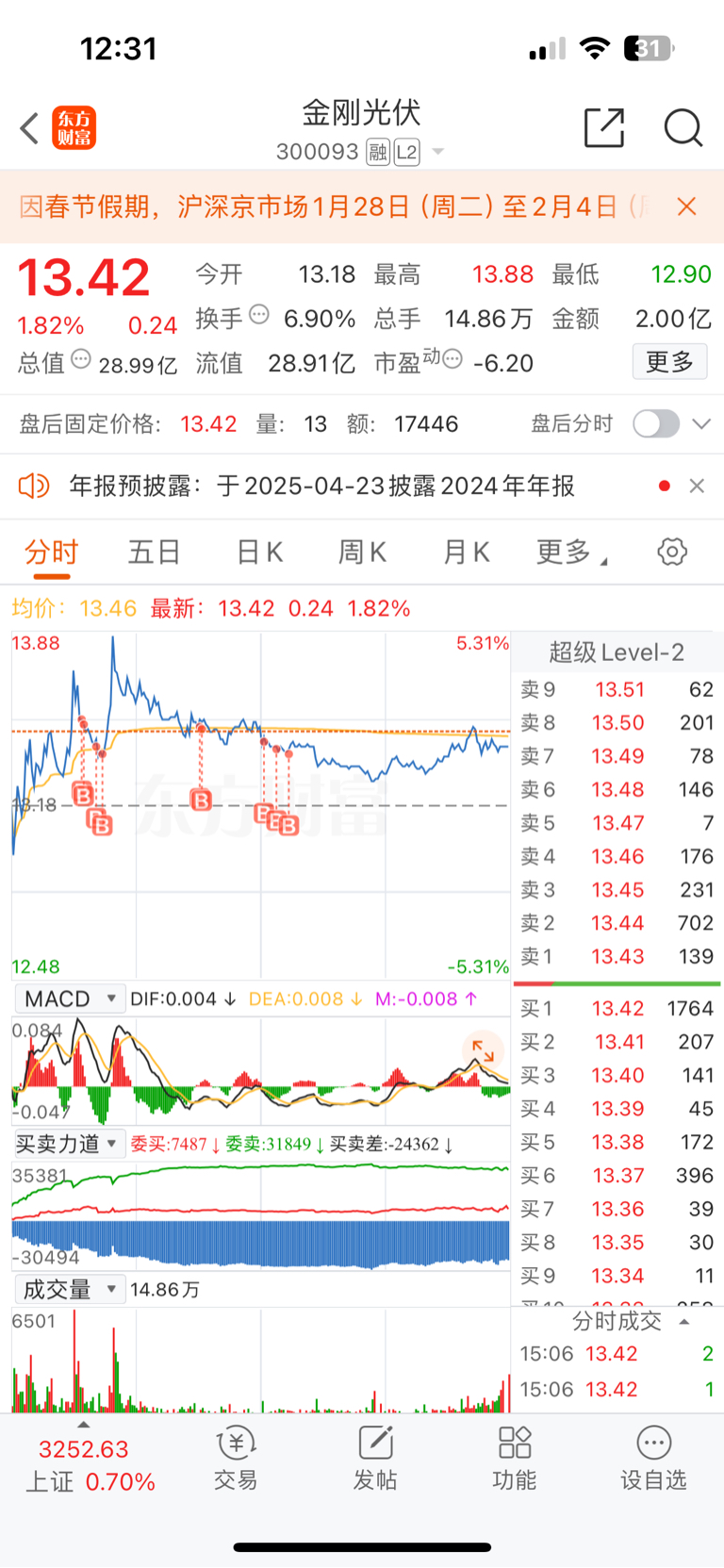 早上看着板块涨,分批进了30w仓今年踩的第一个雷,这个年不好过了。周一开盘给机会