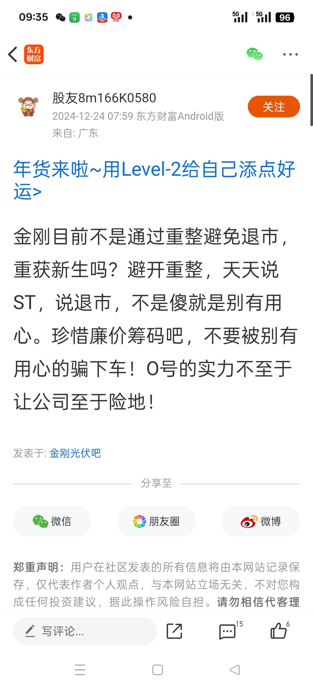 $金刚光伏(SZ300093)$ 某种喷子我实在不想搭理他,这股从26都跌到10块了,是我唱空唱的吗?都退市警示了,我之前一直劝大家别买小心st和退市!这种唱多的才坏,忽悠大家买的不停的吹重整的,真听他买的最少赔了50.60个点了,这种才要不是托就是傻,我是以前被这股坑过,说句公道话,就被这种托和套傻了的啥子不停的攻击。