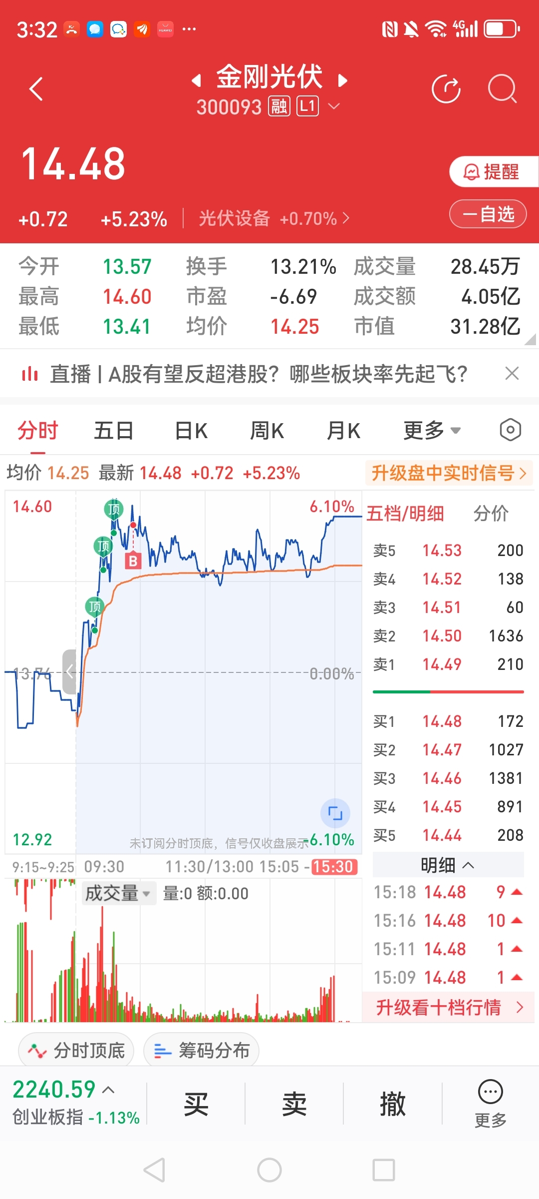 $金刚光伏(SZ300093)$ 明天冲高就跑,改变模式,试着做短线,一天换一个股的感觉让人着迷!