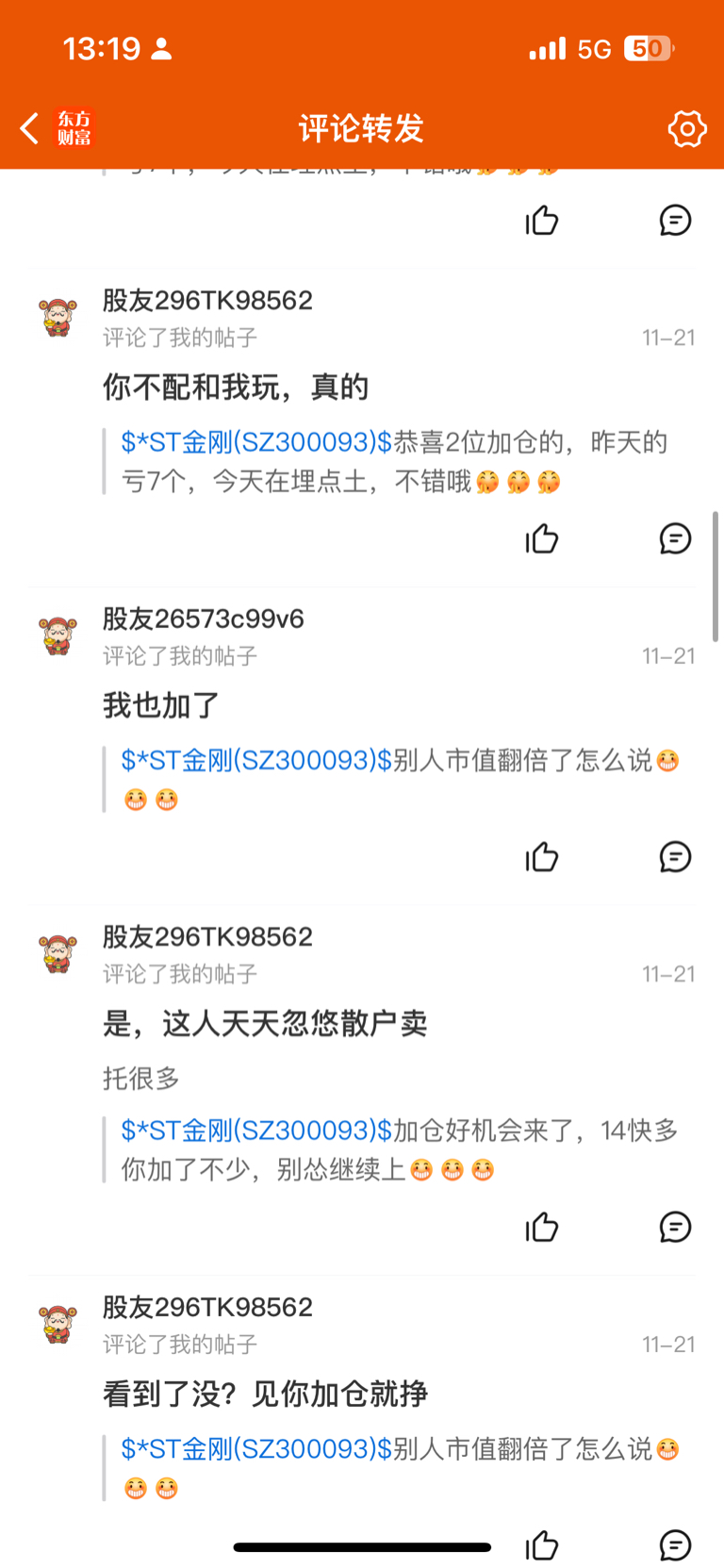 $*ST金刚(SZ300093)$ 我兄弟劝你别不识抬举哈,要不是14块多一直买,现在早跌到11块了