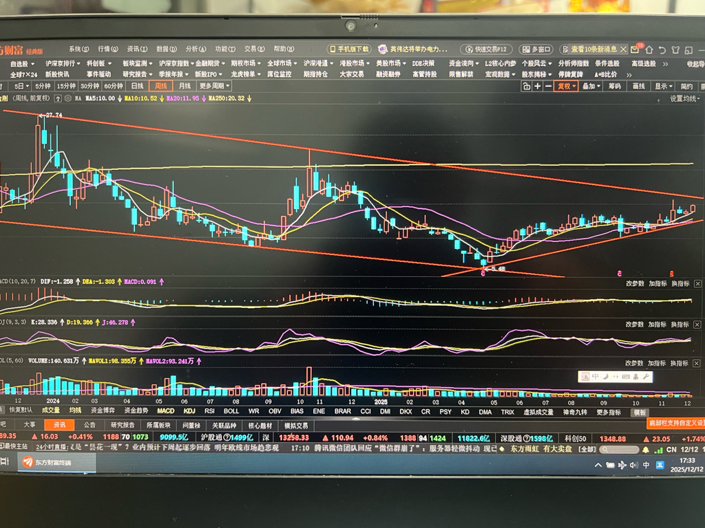 支撑位12.84,压力位15.76,如果突破箱体下一目标位看23,反之跌破12.