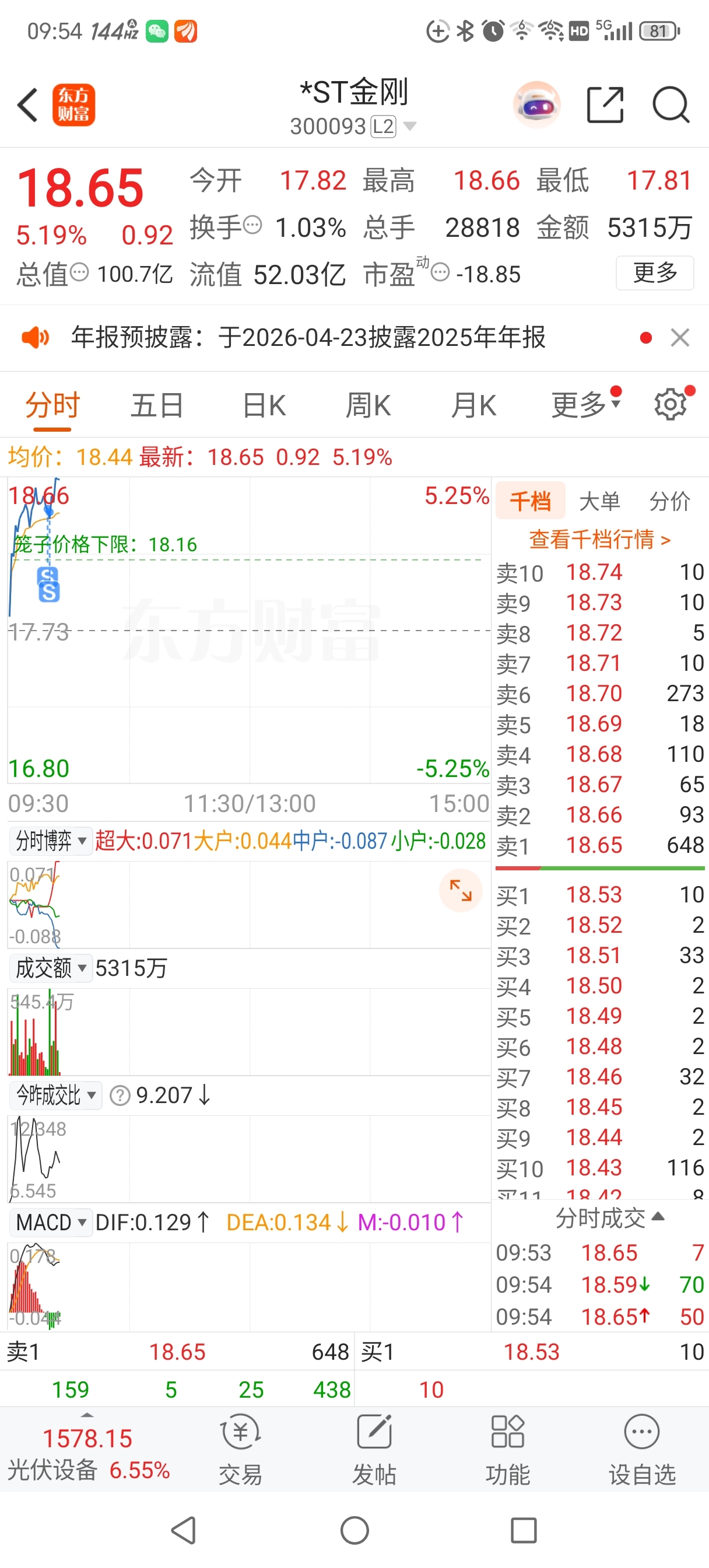 $*ST金刚(SZ300093)$ 18.5出了一半对不对…