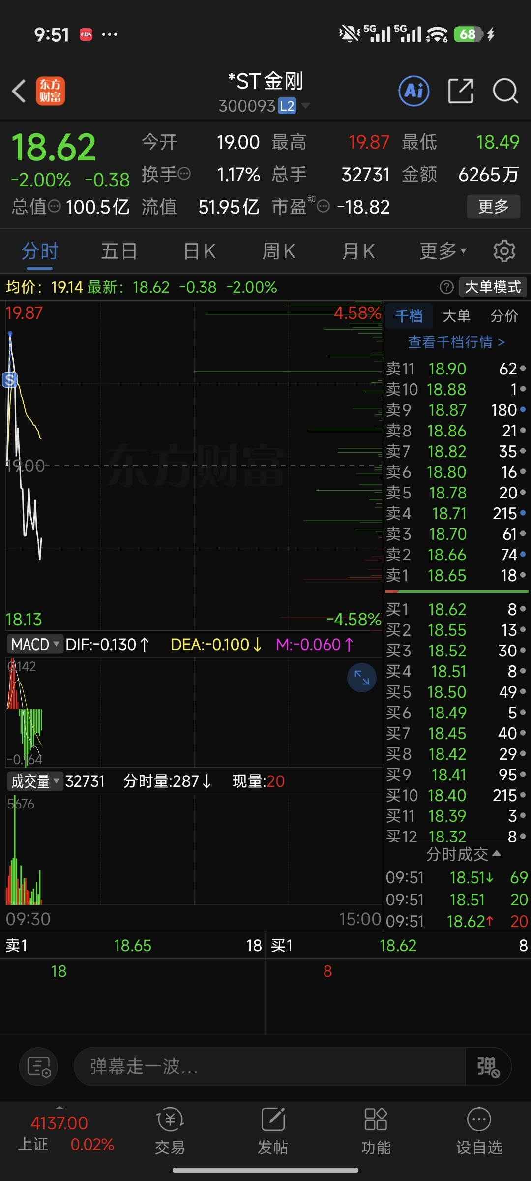 $*ST金刚(SZ300093)$ 第一次卖的如此精准……