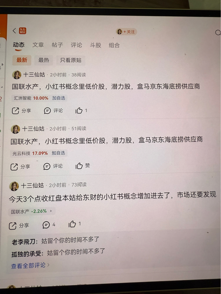 这个十三仙姑真的特别垃圾特别low,好想你清仓了,国联水产亏26个点已经全回来了