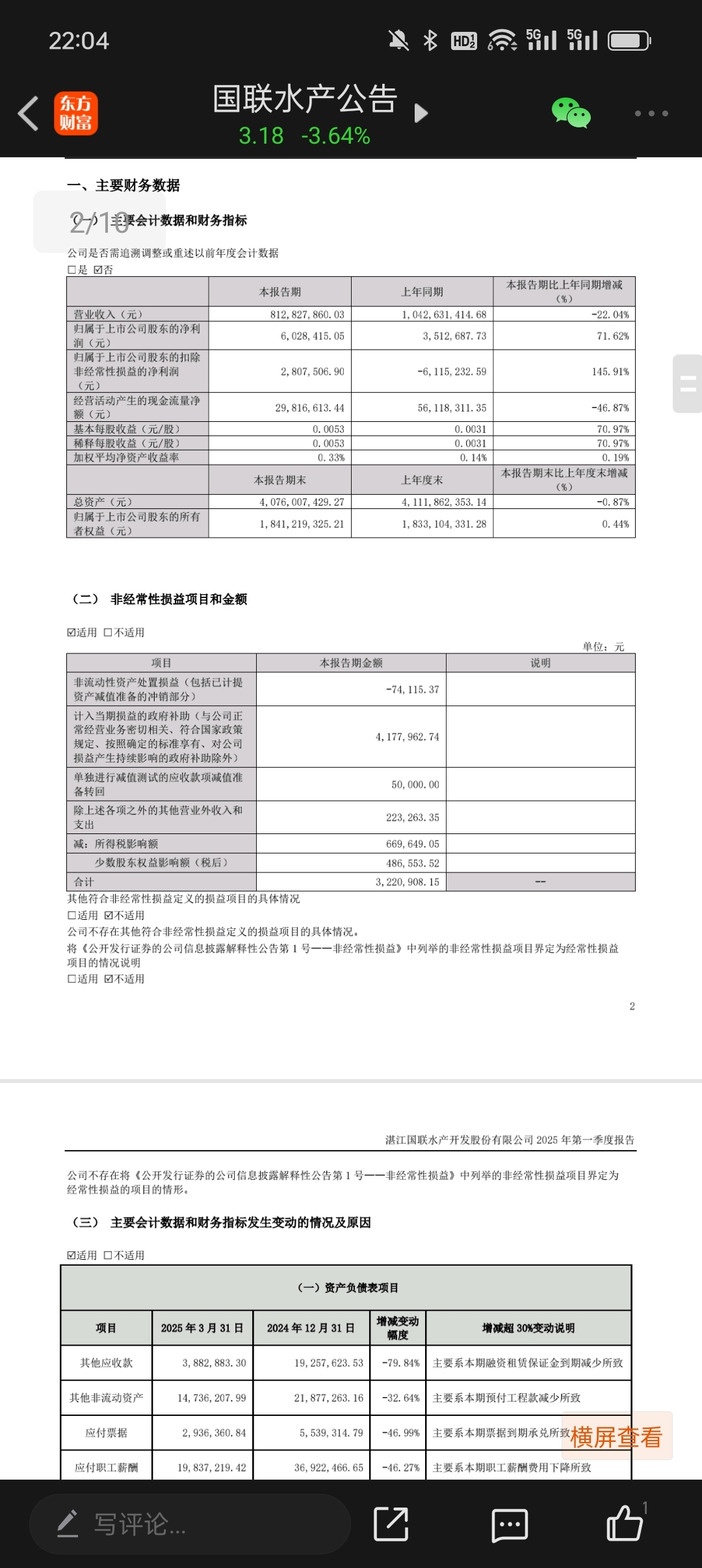 $国联水产(SZ300094)$ 明天要涨停了!一季度的业绩涨了一倍多!!
