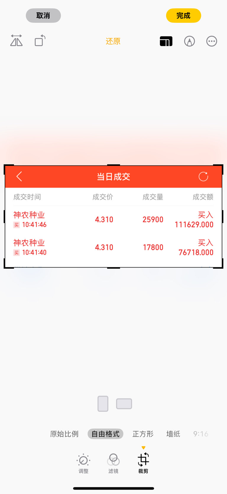 我买什么股第一时间都发截图,不论涨跌,我也是乱买的,但预感今天神农肯定大涨,可惜