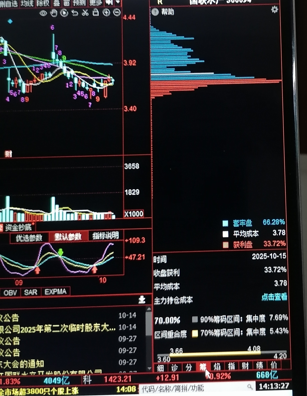 $国联水产(SZ300094)$ 套牢盘66%,搞个锤子哟!