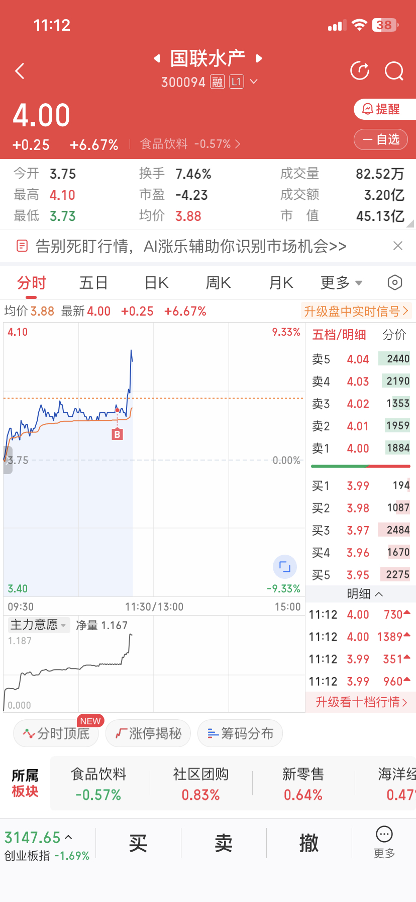 $国联水产(SZ300094)$ 才买了300股,主力憋不住了