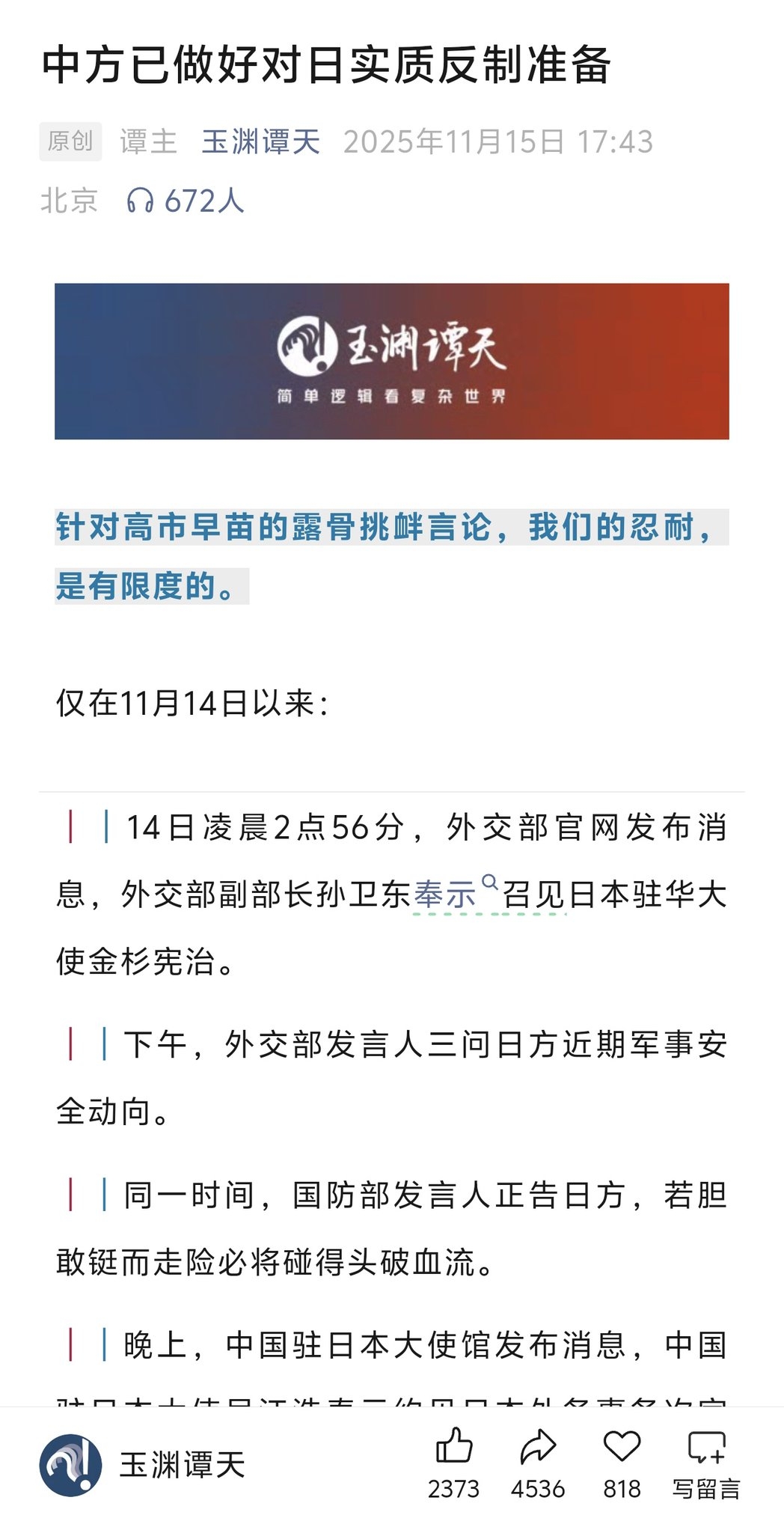官方媒体明确要实质性反制了。下周一水产不会集体涨停吧!