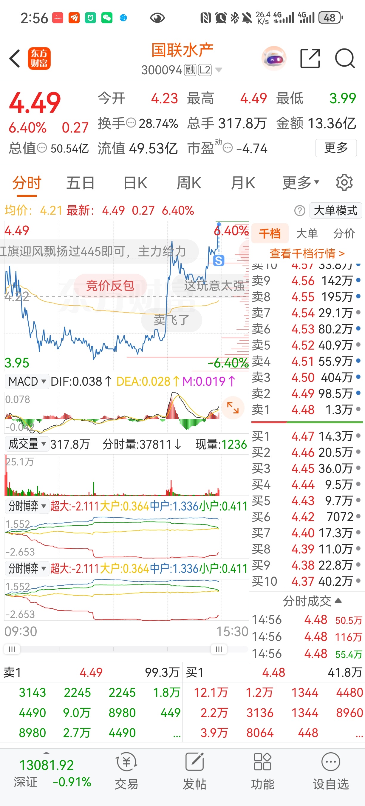 $国联水产(SZ300094)$ 算了。我还是受不了这种刺激。溜了溜了