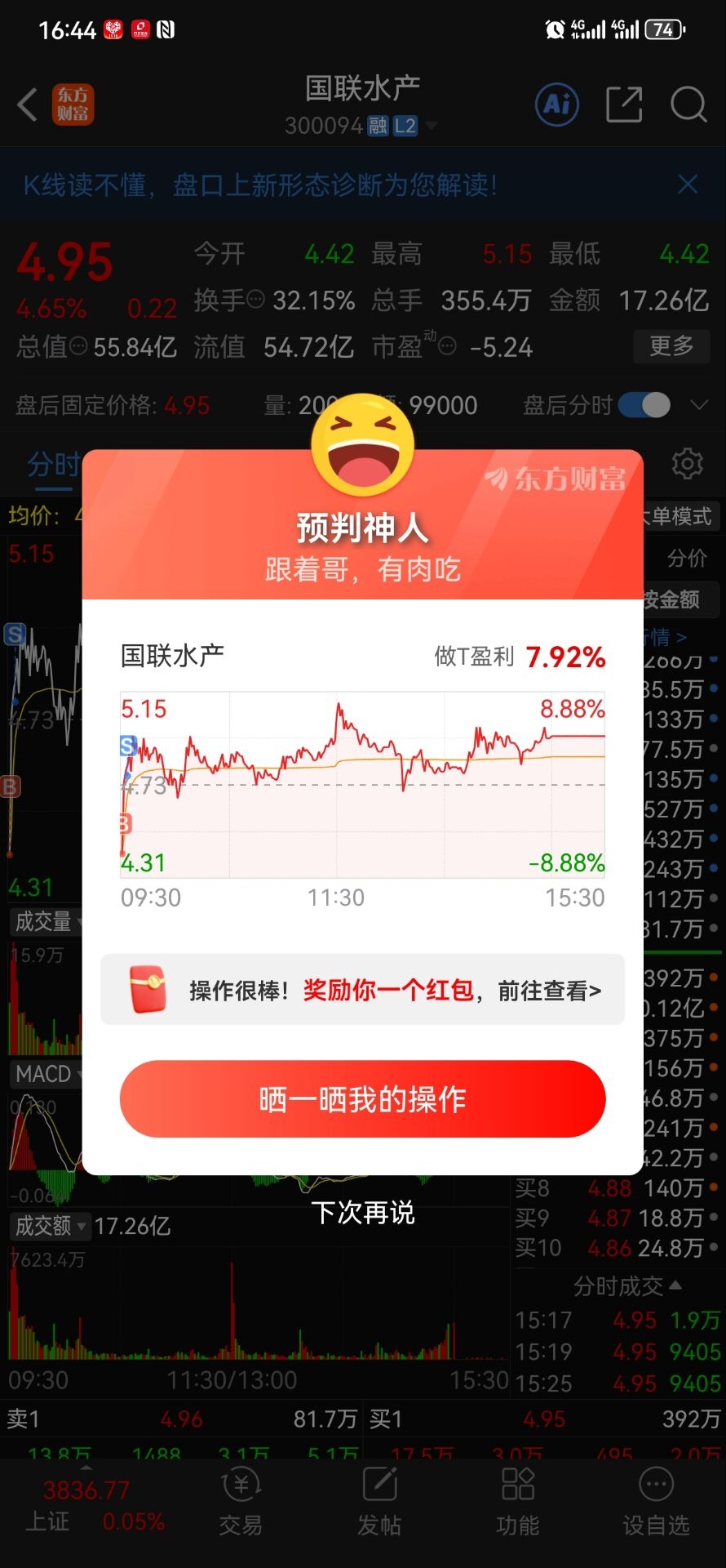 这个主力想什么,完全被我猜中。昨天做t八个点,今天做t十个点