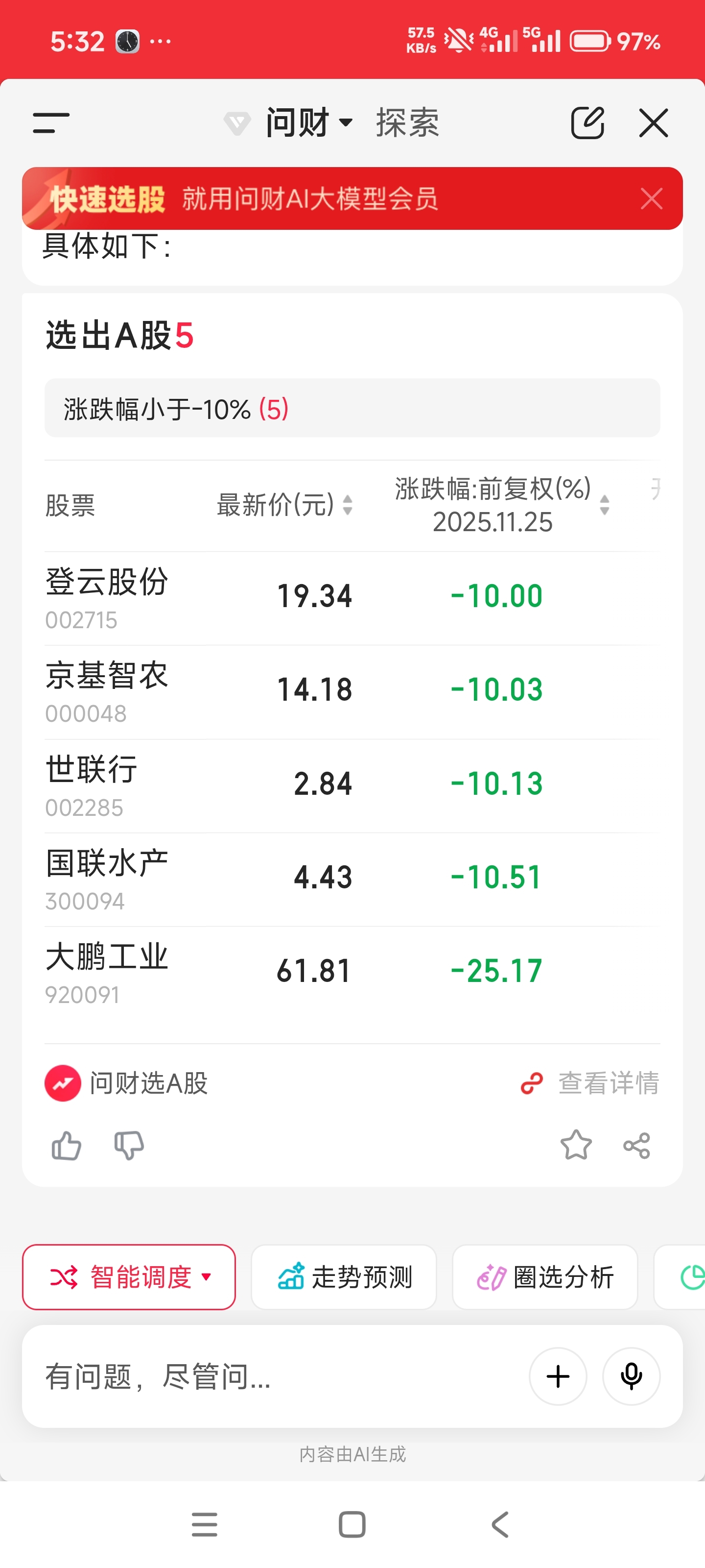 $国联水产(SZ300094)$ 沪深全市场跌幅第一。。。。。