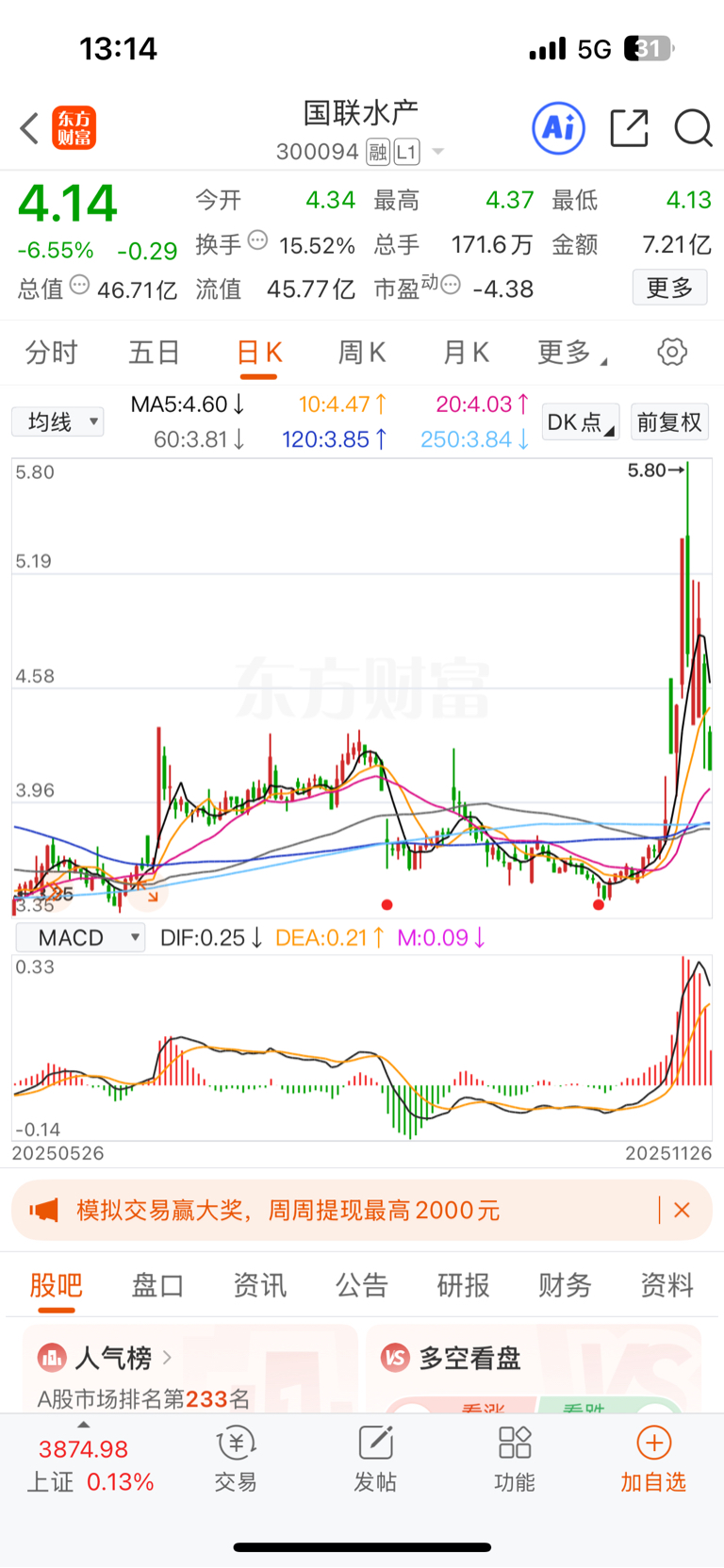 $国联水产(SZ300094)$ 上次套4个月,这次会不会10个月
