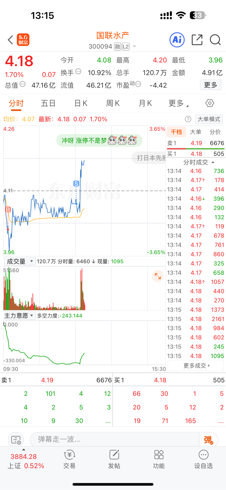 $国联水产(SZ300094)$ 量化真厉害,我不卖就是不拉,都快清仓了就拉