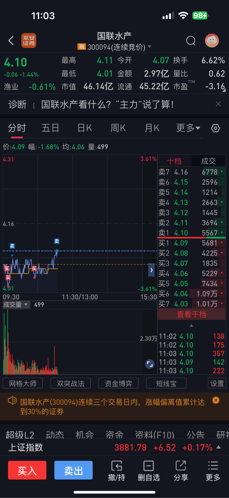 $国联水产(SZ300094)$ 主力,你们自己看着办嘛。