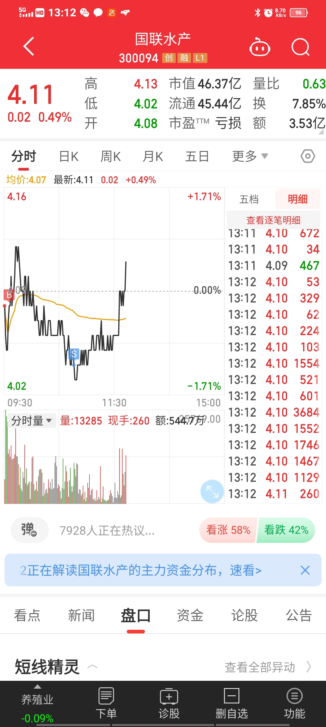 $国联水产(SZ300094)$ 最低点割了,就涨了