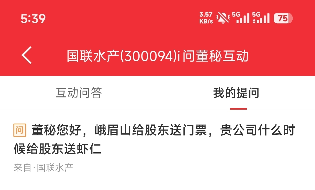 $国联水产(SZ300094)$ 什么时候给股东送虾仁
