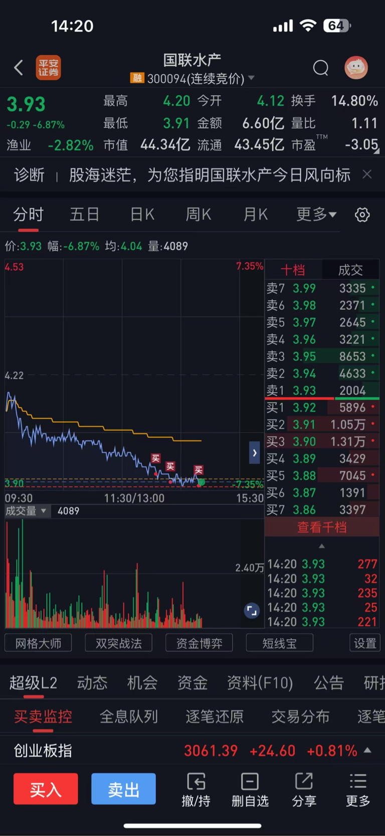 $国联水产(SZ300094)$ 昨天3-400手吃了的,主力,你先看着办。看看再拿走你3000块有没有希望。