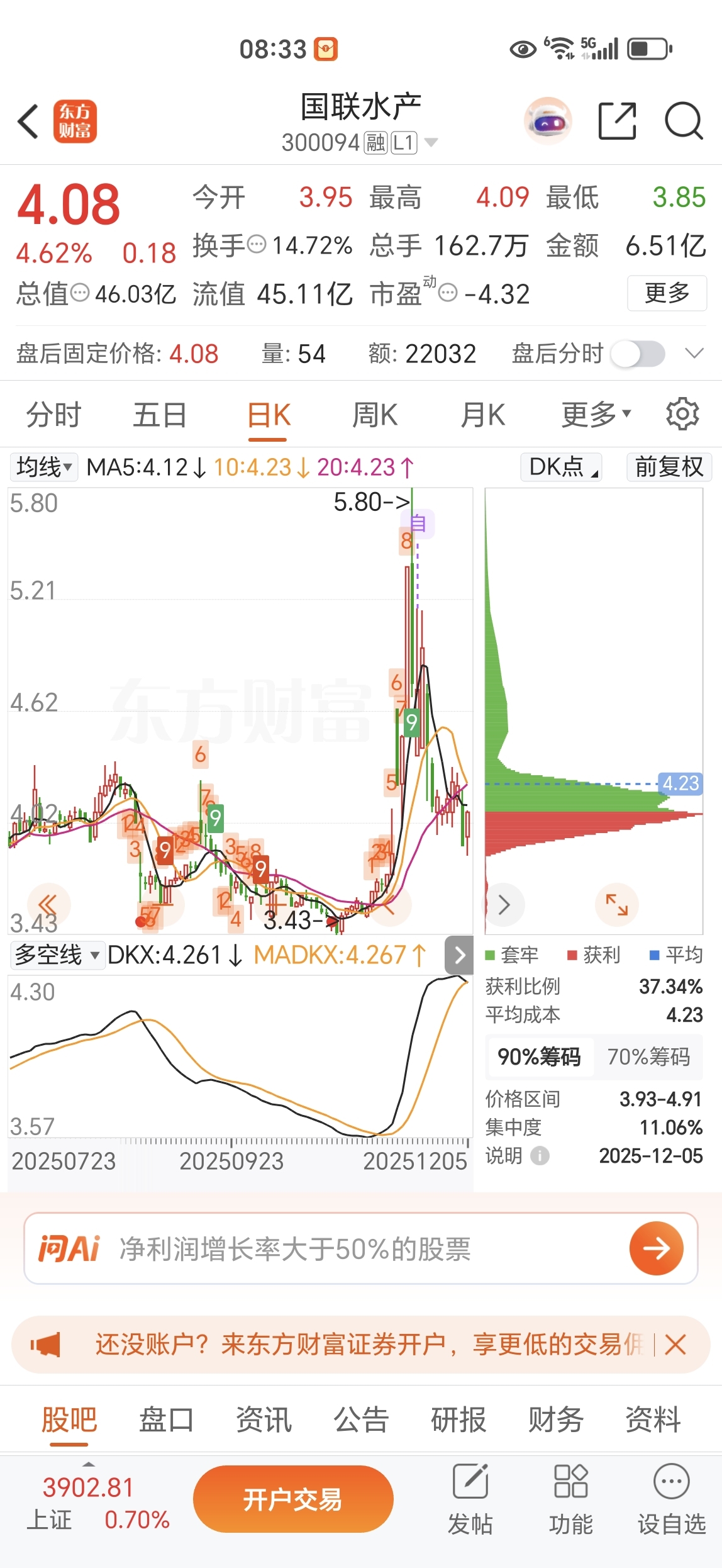 $国联水产(SZ300094)$ 看底下多空线这货要在起来很难了,得几个月