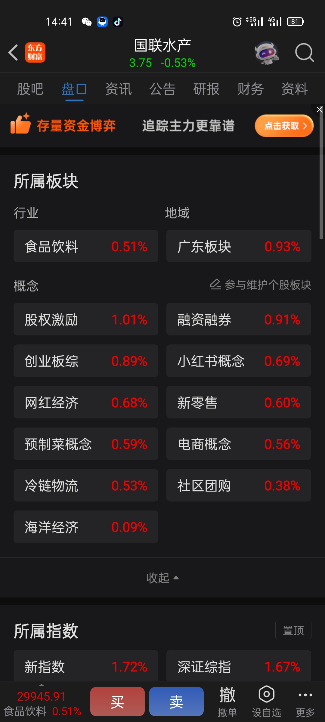 $国联水产(SZ300094)$ 所有板块都是红的,就你绿。