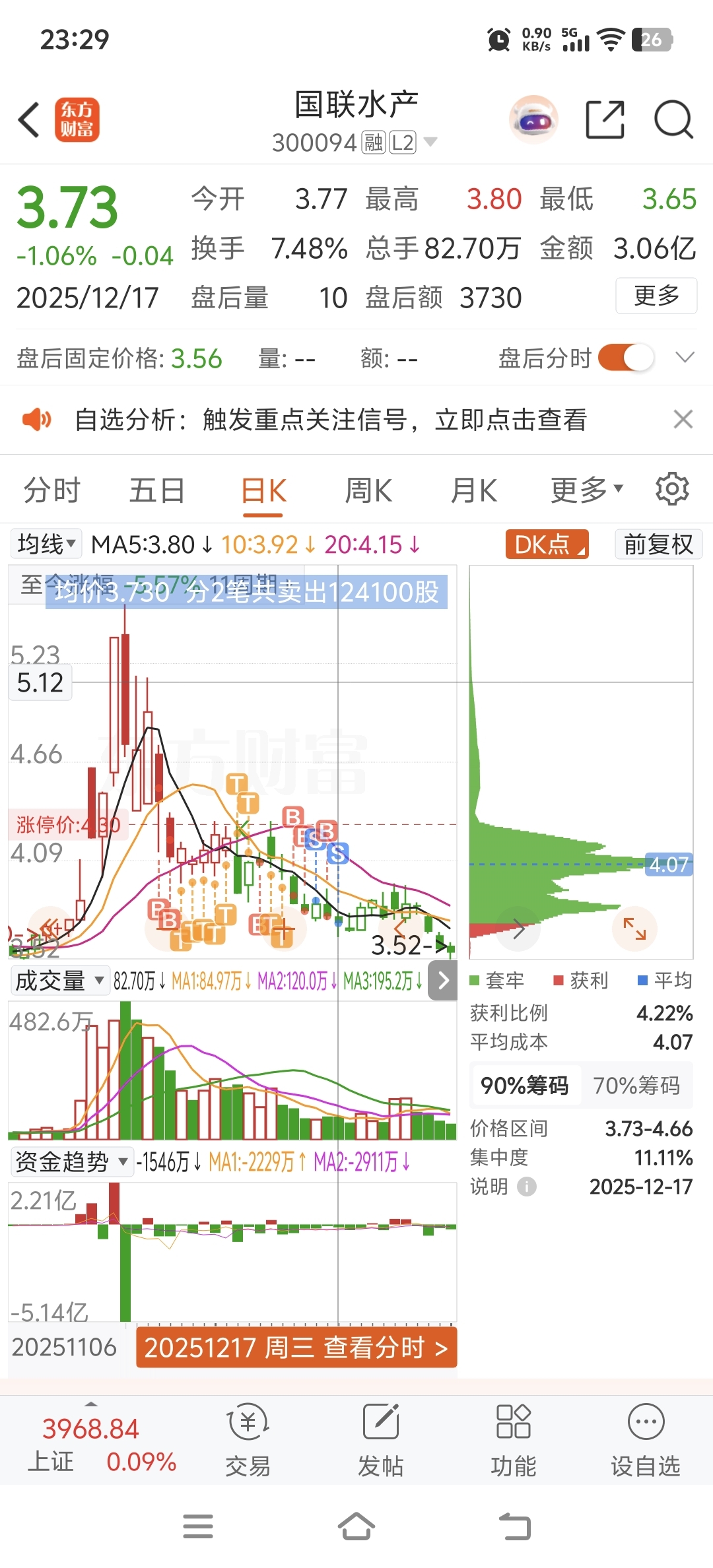 $国联水产(SZ300094)$ 下跌趋势硬抗亏了8万多,还好割了,不然还得多亏2万多